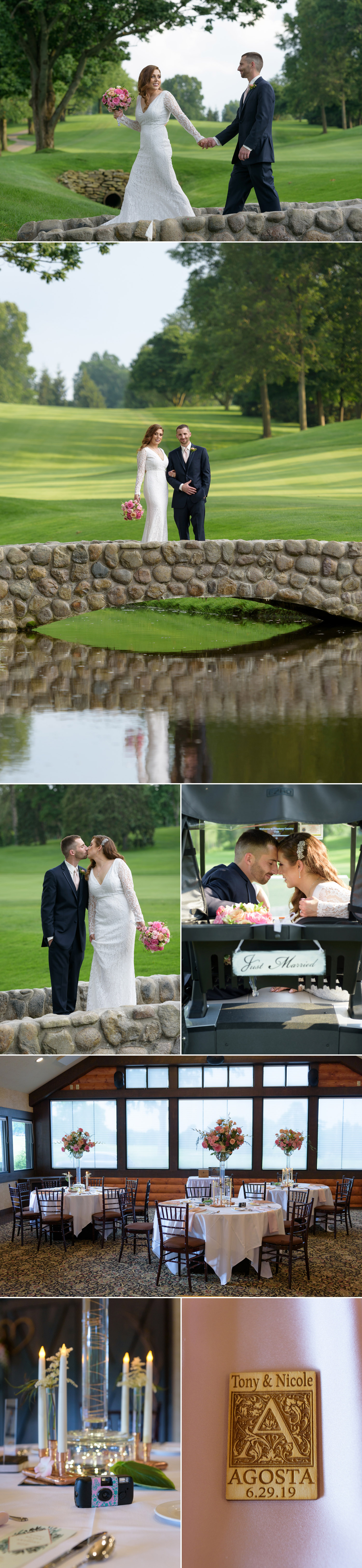 Later in the evening, Nicole and Tony stepped out for a romantic sunset stroll through the golf course. And the night was topped off with a Handel’s cream bar instead of a cake and a chocolate and candy table for the groom’s sweet tooth.