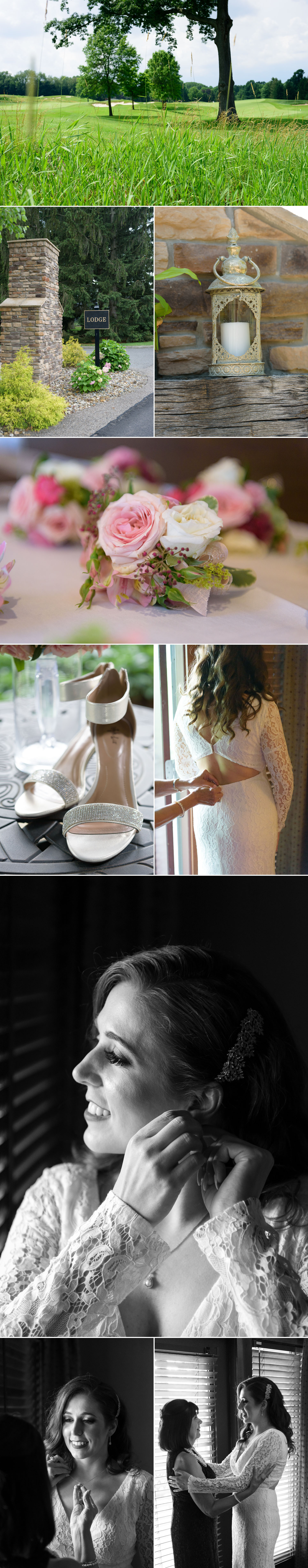 The ceremony was held on the grounds of Firestone Country Club. The setting was idyllic, with lush greenery, blooming flowers, and a gentle breeze. Nicole and Anthony exchanged vows in front of their closest family and friends in the Firestone Lodge. The couple’s sweet French bulldog, Louise, joined the couple after the ceremony. He looked perfect wearing a handmade wreath of the same pink roses in Nicole’s bouquet.