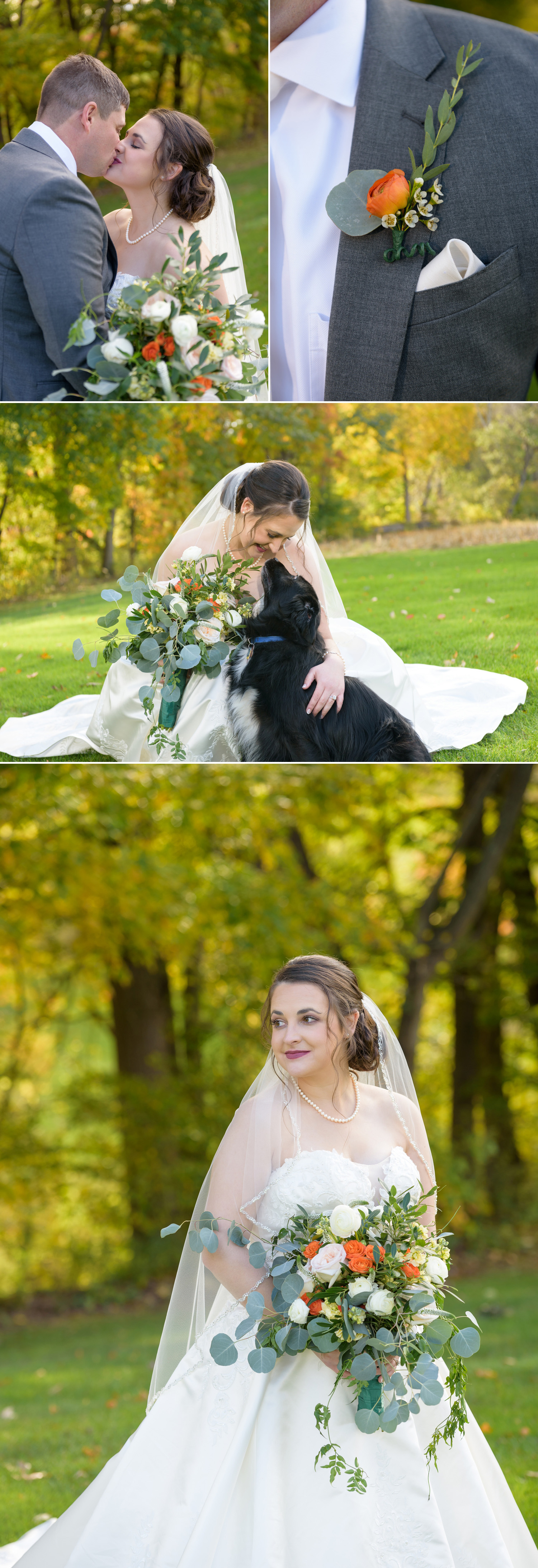 After the ceremony, we made a quick stop at Jane’s family home to capture some quiet moments and a few joyful ones with their beloved dogs. It was a relaxed and meaningful interlude before heading back to the Portage Country Club for golden hour portraits on the golf course.
