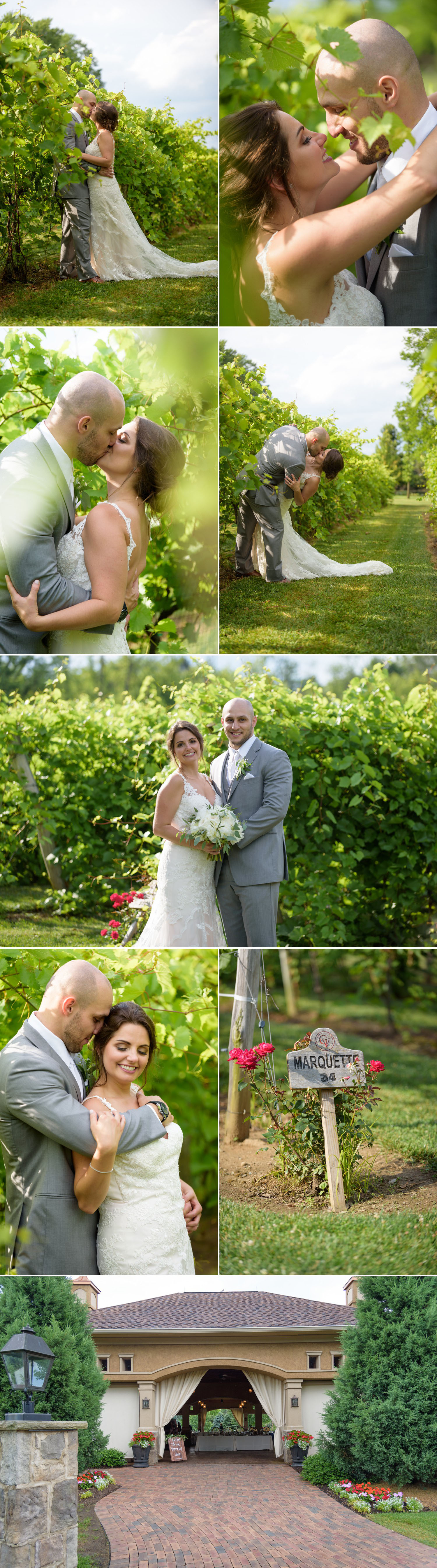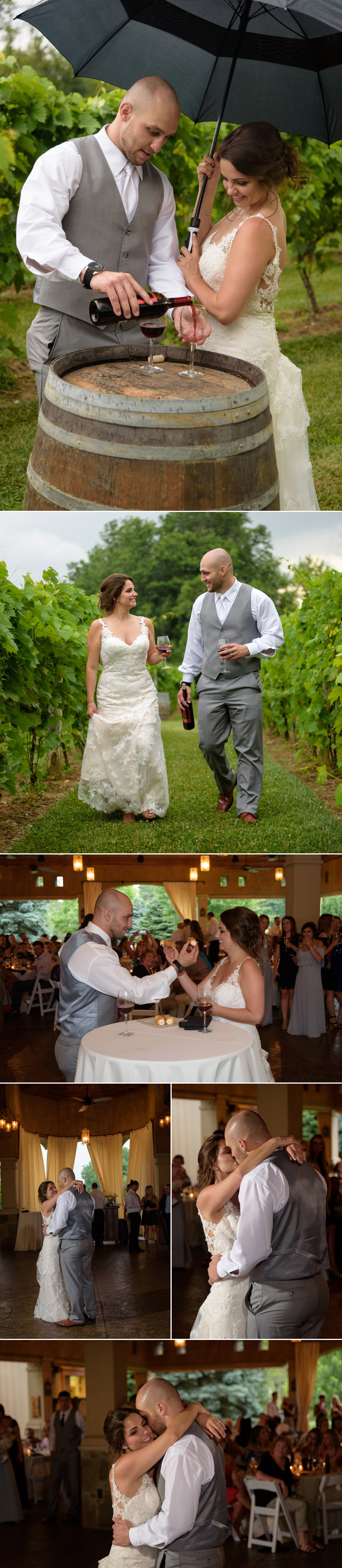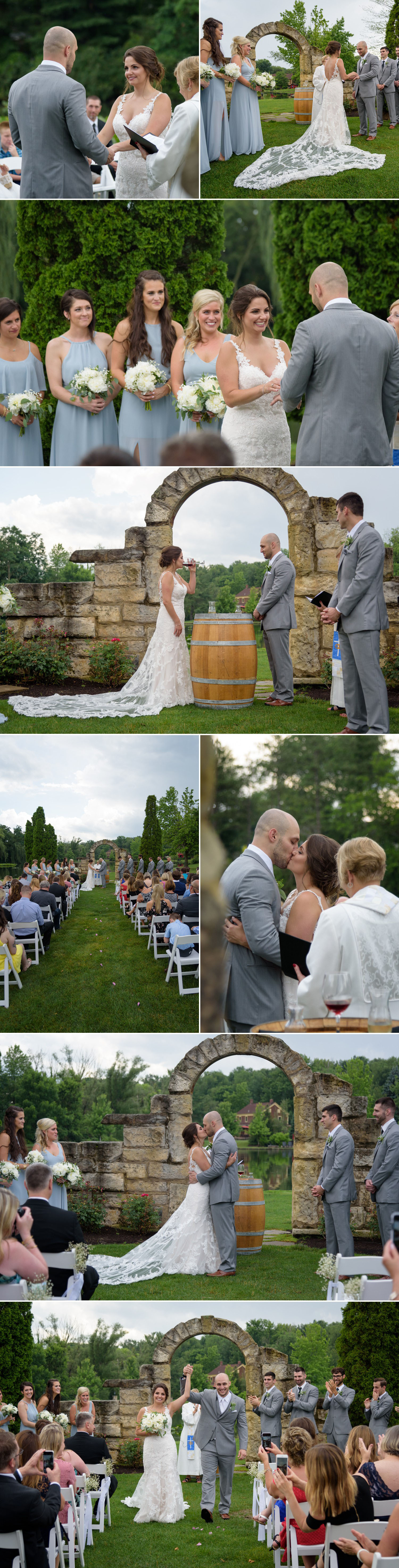 Dominic and Danielle exchanged vows by the stone arch at the edge of the lake. A unique addition to their wedding ceremony was a wine unity ceremony, written by the couple and their pastor. Dominic picked his favorite red wine and Danielle picked her favorite white wine. During the ceremony their pastor talked about how the wine glasses represent the pair and how wine gets better with age, just like love. They each poured a little bit of wine into the glass creating a rosé wine. This represented a blending of two people and becoming one in marriage.