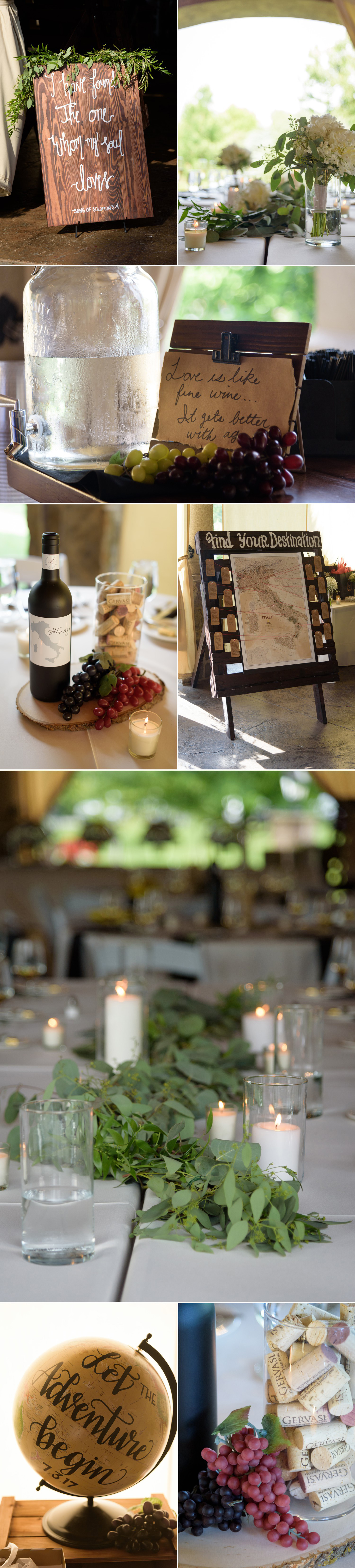 An Italian influence was also visible in Danielle and Dominic’s choice of venue, desserts and centerpieces. The wedding was held at the beautiful Gervasi Vineyard, with its Tuscan inspired grounds, Villas and outdoor wedding Pavilion. In lieu of a cake, Danielle chose cannoli and the two newleyweds decided to feed one another canoli rather than the traditional cake cutting. For centerpieces, Danielle’s good friend Jordan designed wine bottle labels decorated with maps of Italy and coordinated with wine corks and wine grapes.
