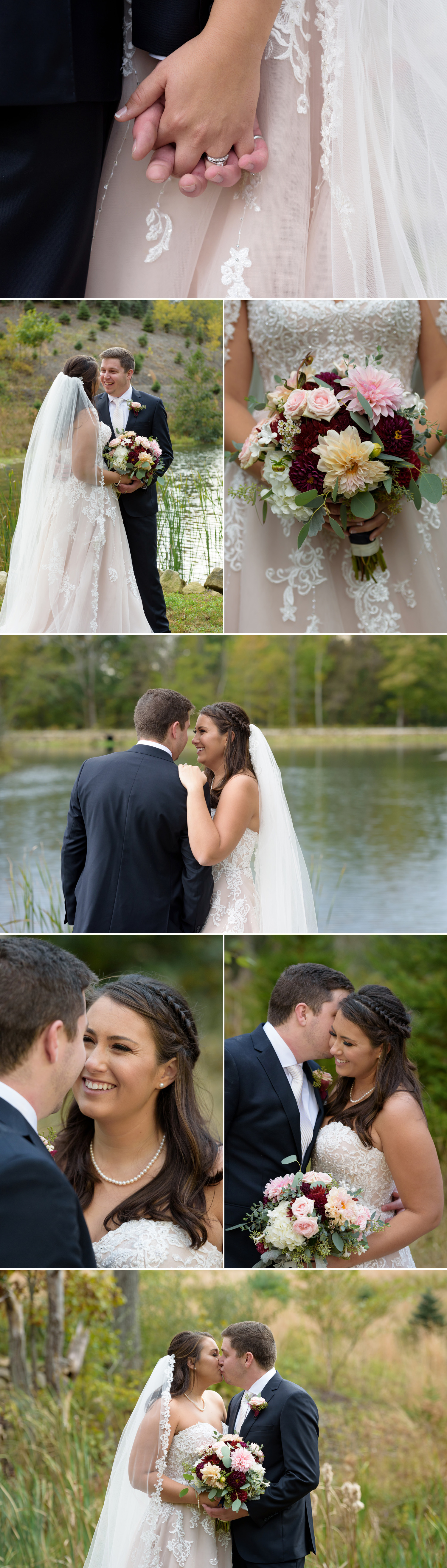 Following the afternoon ceremony, Anne and Austin’s guests moved to the picturesque grounds of the Columbia Woodlands. Anne and Austin wanted to embrace the autumn weather on their wedding day, with natural photos that captured the details of the day. The grounds of the Columbia Woodlands helped set the tone for their photos. The lush greens in the wooded areas established an intimate space for the couple. The water, with its high grasses and charming background of more trees, provided the perfect natural landscape for some lovely photos. And a short downpour of rain just prior to the reception gave this fun-loving couple an excuse to laugh and run in the rain on their wedding day.